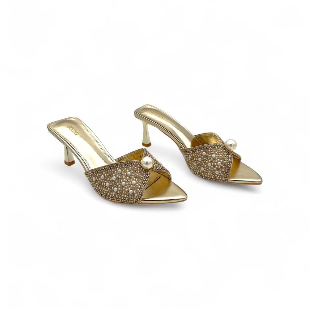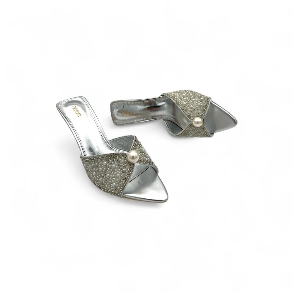شبشب سهرة مصنوع من مواد عالية الجودة، يتميز بتصميم عصري وأنيق يضفي لمسة من الفخامة على إطلالتك. سهل الارتداء والخلع، ويحتوي على بطانة مريحة لضمان الراحة أثناء ارتدائه لفترات طويلة ويأتي بكعب مريح ارتفاعه 8 سنتيمتر مزين بالفصوص اللامعة التي تضفي لمسة براقة تميزك في كل مناسبة.