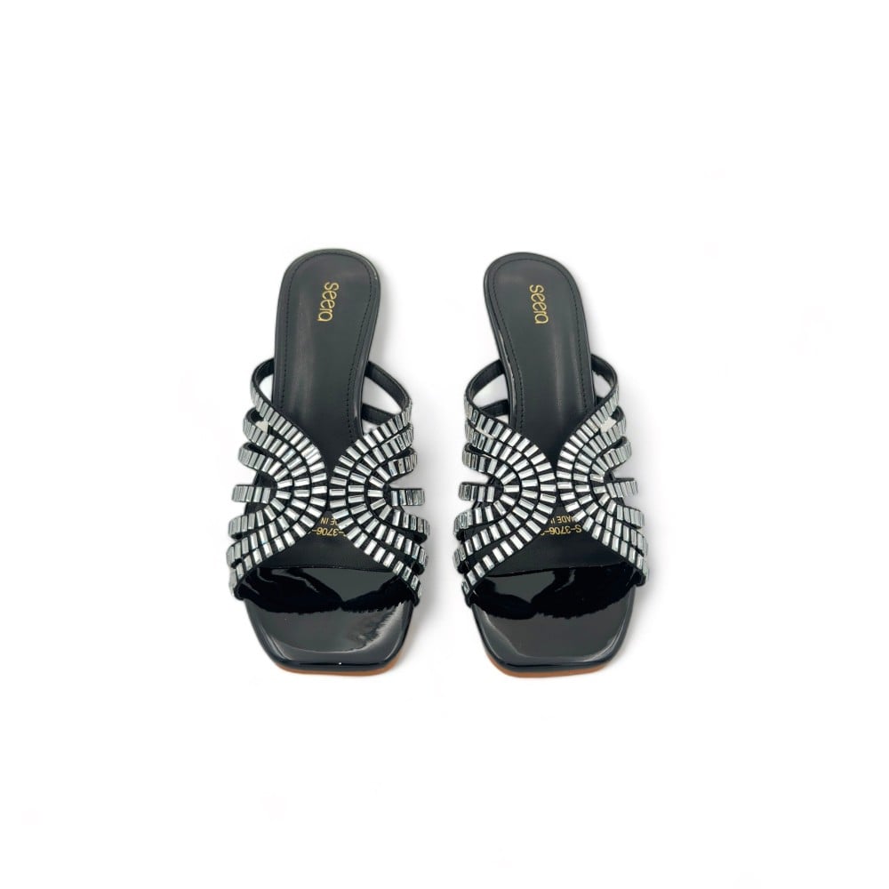 شبشب كريستال مصنوع من مواد عالية الجودة، يتميز بتصميم عصري وأنيق يضفي لمسة من الفخامة على إطلالتك. سهل الارتداء والخلع، ويحتوي على بطانة مريحة لضمان الراحة أثناء ارتدائه لفترات طويلة ويأتي بكعب عريض ارتفاعه 6 سنتيمتر مزين بالفصوص اللامعة التي تضفي لمسة براقة تميزك في كل مناسبة.